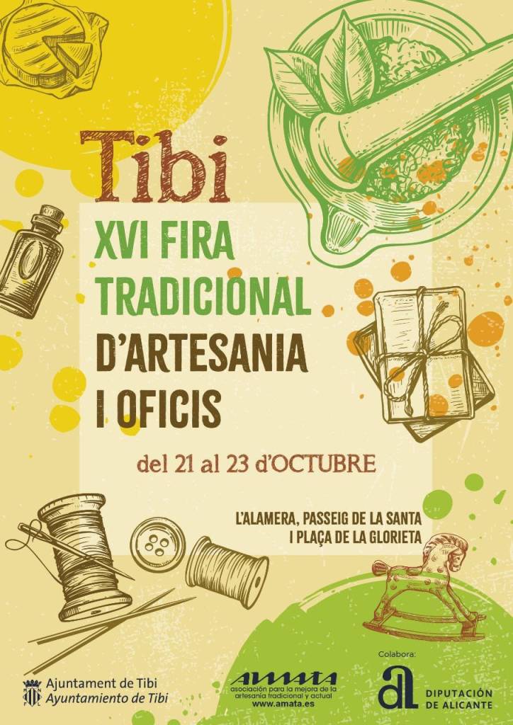 Del 21 al 23 de Octubre se celebra en Tibi la tradicional Feria de Artesanía y Oficios. Este año se celebra la XVI edición de un evento que congrega a multitud de visitantes y los mejores exponentes de artesanía tradicional.